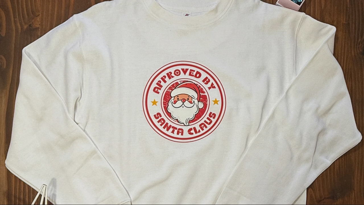 Get festive and stay cozy with our “Approved by Santa Claus” Christmas Sweatshirt — officially North Pole certified! 🎄